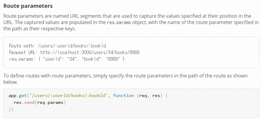 위의 게시글을 확인해보면 Route path가 "/users/:userId/books/:bookId" 일 때,