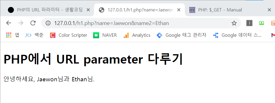 http://127.0.0.1/h1.php?name=Jaewon&name2=Ethan