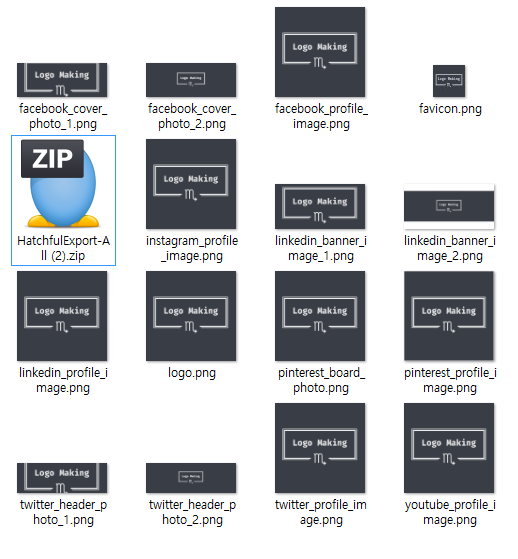 이메일을 다운받고 압축을 풀면 위 사진처럼 다양한 크기의 로고가 들어있는 것을 확인할 수 있습니다.
