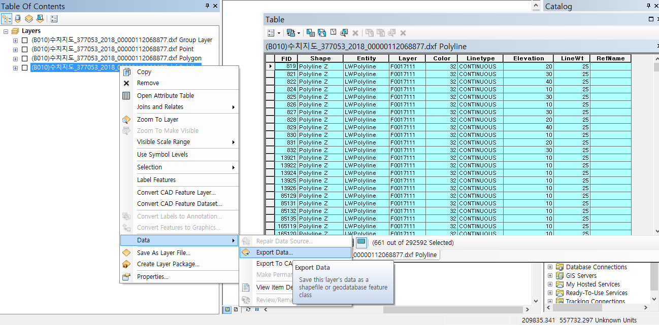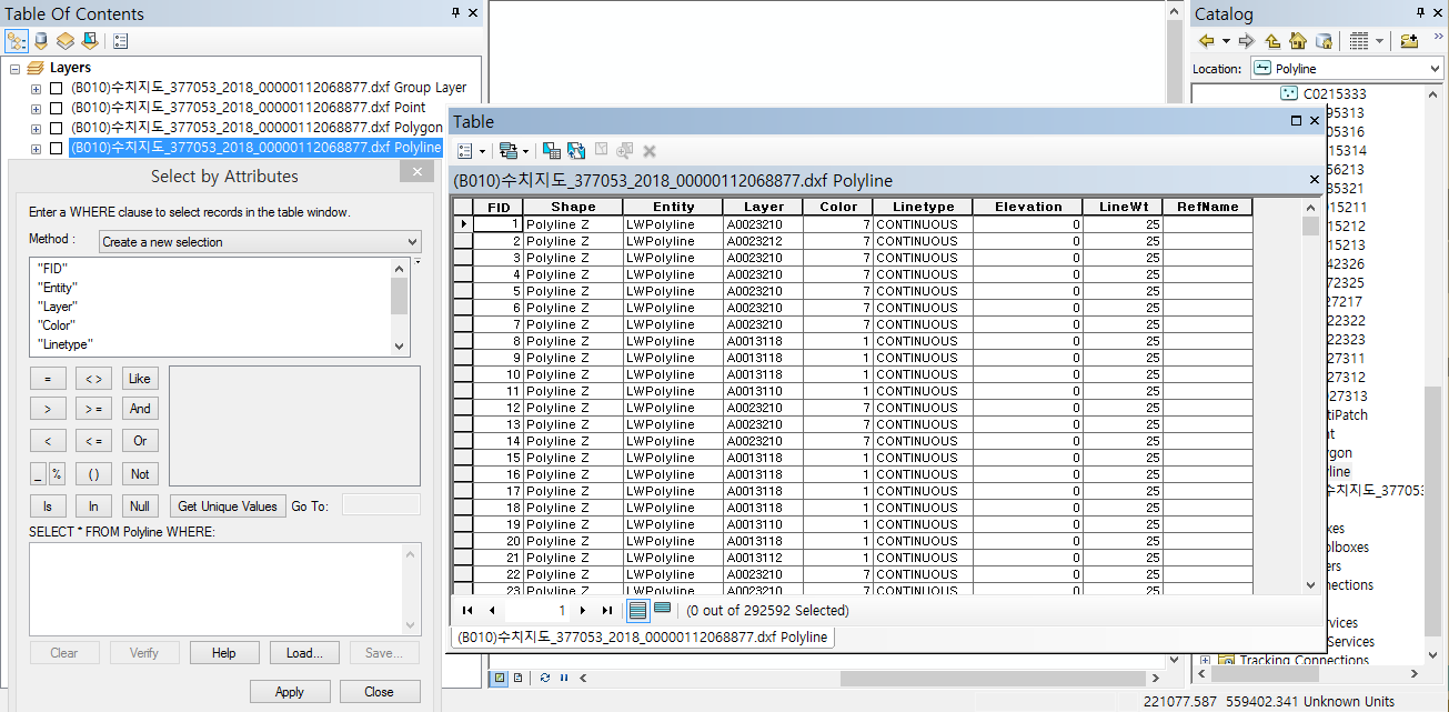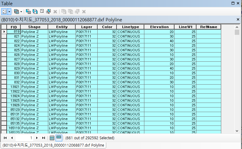 252,592개의 polyline 중 661개가 선택되신 것을 확인하실 수 있습니다.