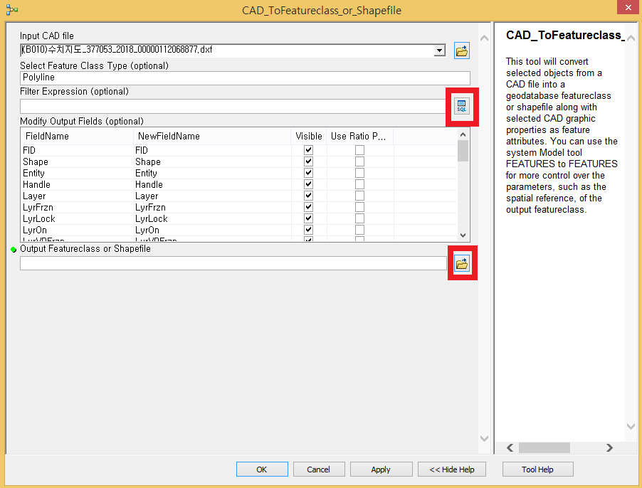 CAD툴은 CAD_ToFeaturesclass_or_Shapefile을 추가하여 주시면 됩니다.