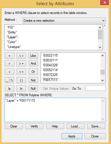 Polyline 우클릭 - Open Attribute Table - Table Option - Select by Attributes