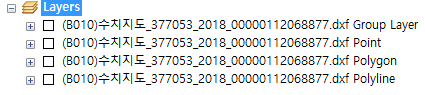 밑으로 쭉 내리셔서 Point, Polygon, Polyline파일을 TOC로 옮겨주세요.