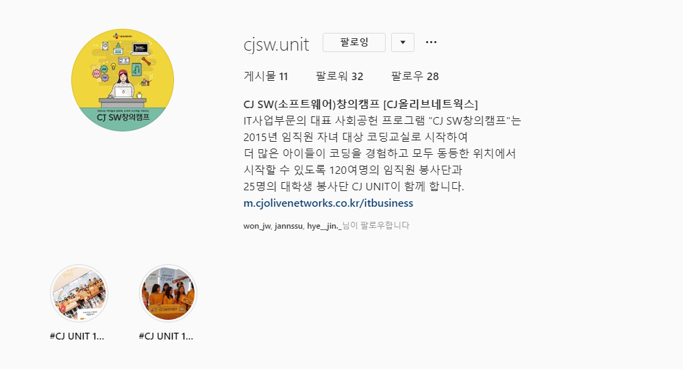 네이버 포스트, 인스타그램, 유튜브등 다양한 경로로 CJ UNIT을 홍보해주고 있으십니다!