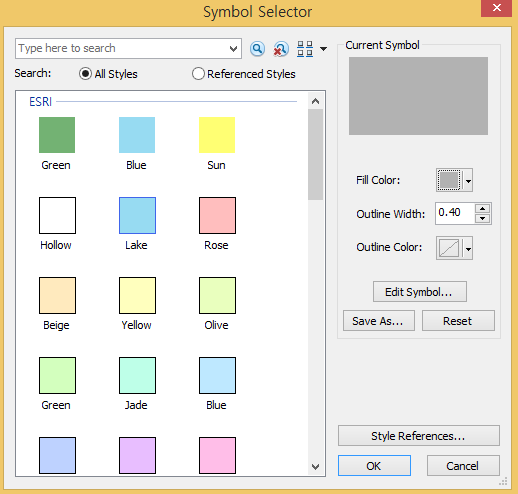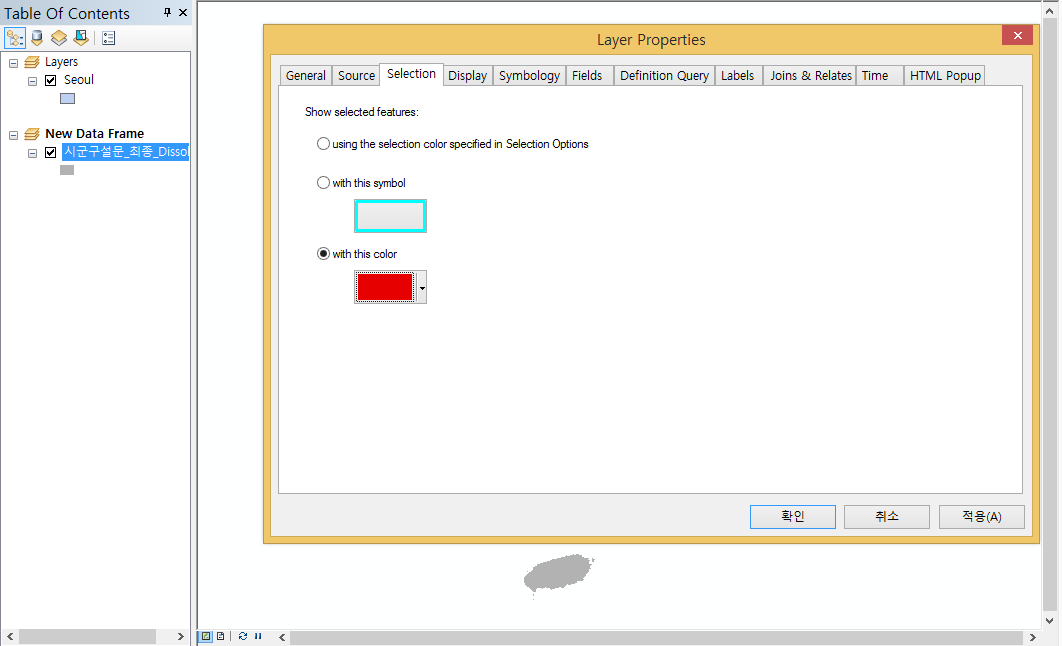 TOC에서 Dissolve된 파일의 심볼을 클릭하여 필드색은 회색으로, 경계선 색깔은 no color로 지정해줍니다.