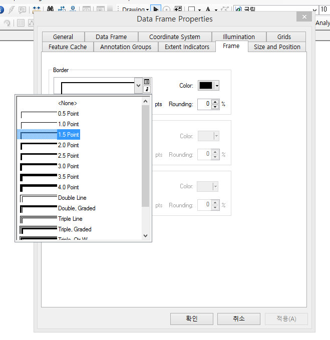 우클릭 - Properties - Frame - Boder에서 프레임의 외곽을 변경하여 줄 수 있습니다.