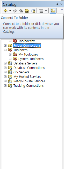 ArcMap 상단의 Windows - Catalog를 통해 Catalog tool을 뛰울 수 있습니다.