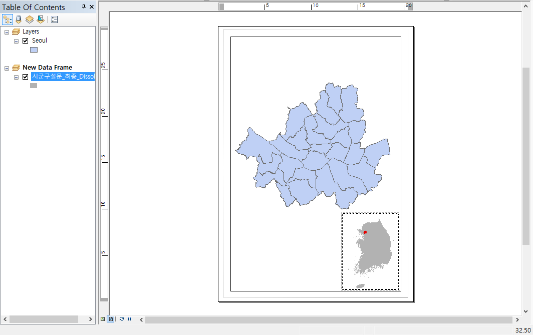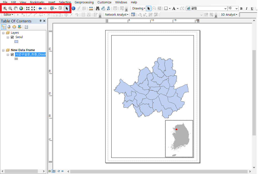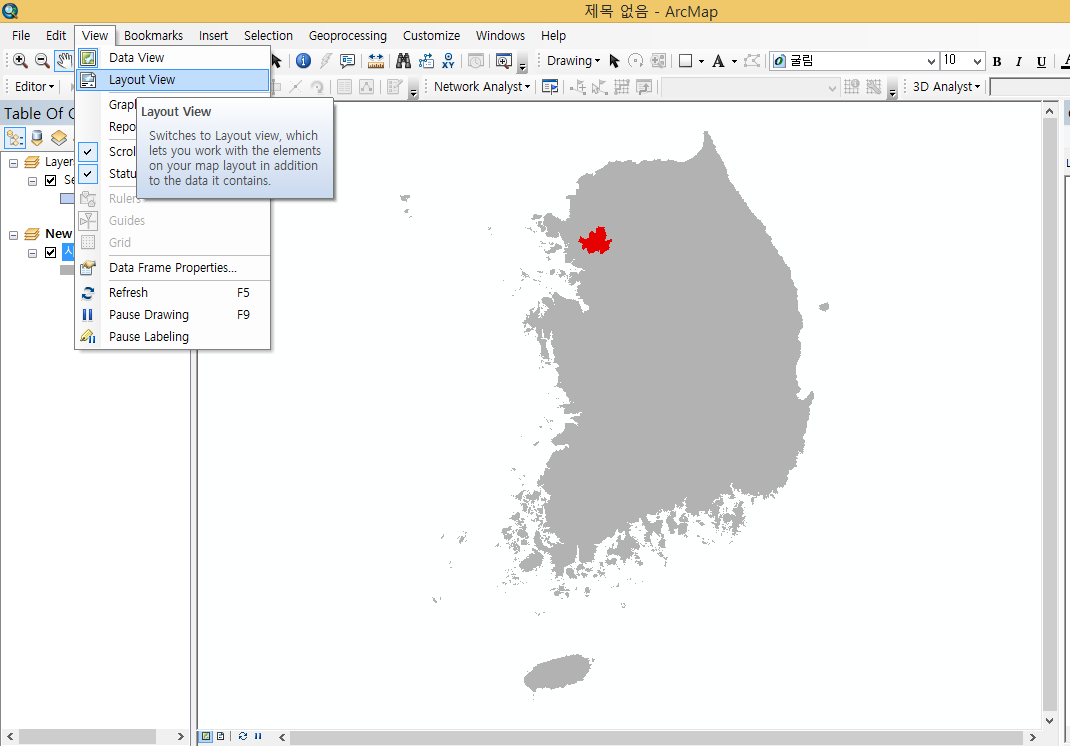 아크맵 상단의 View - Layout View를 통해 Layout화면으로 이동합니다.