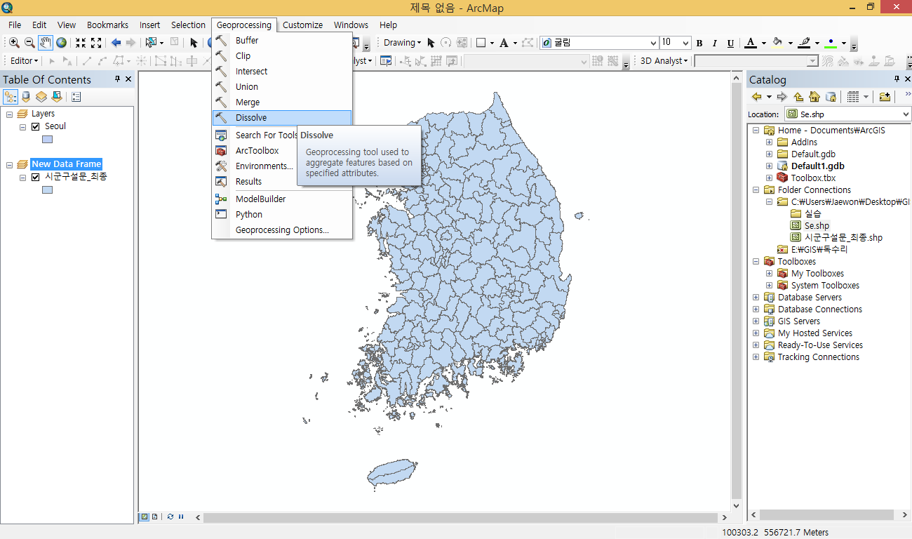 [GIS 10.5] GIS기초 #3 下. Data Management, Geoprocessing : Union, Merge, Dissove