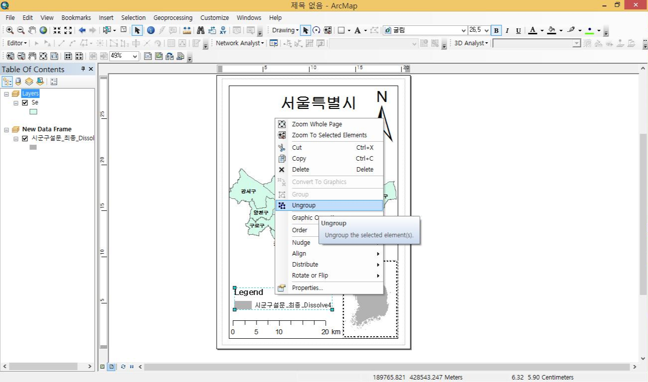 범례역시 Convert to Graphic - Ungroup을 통해 각각의 그래픽으로 표현하여