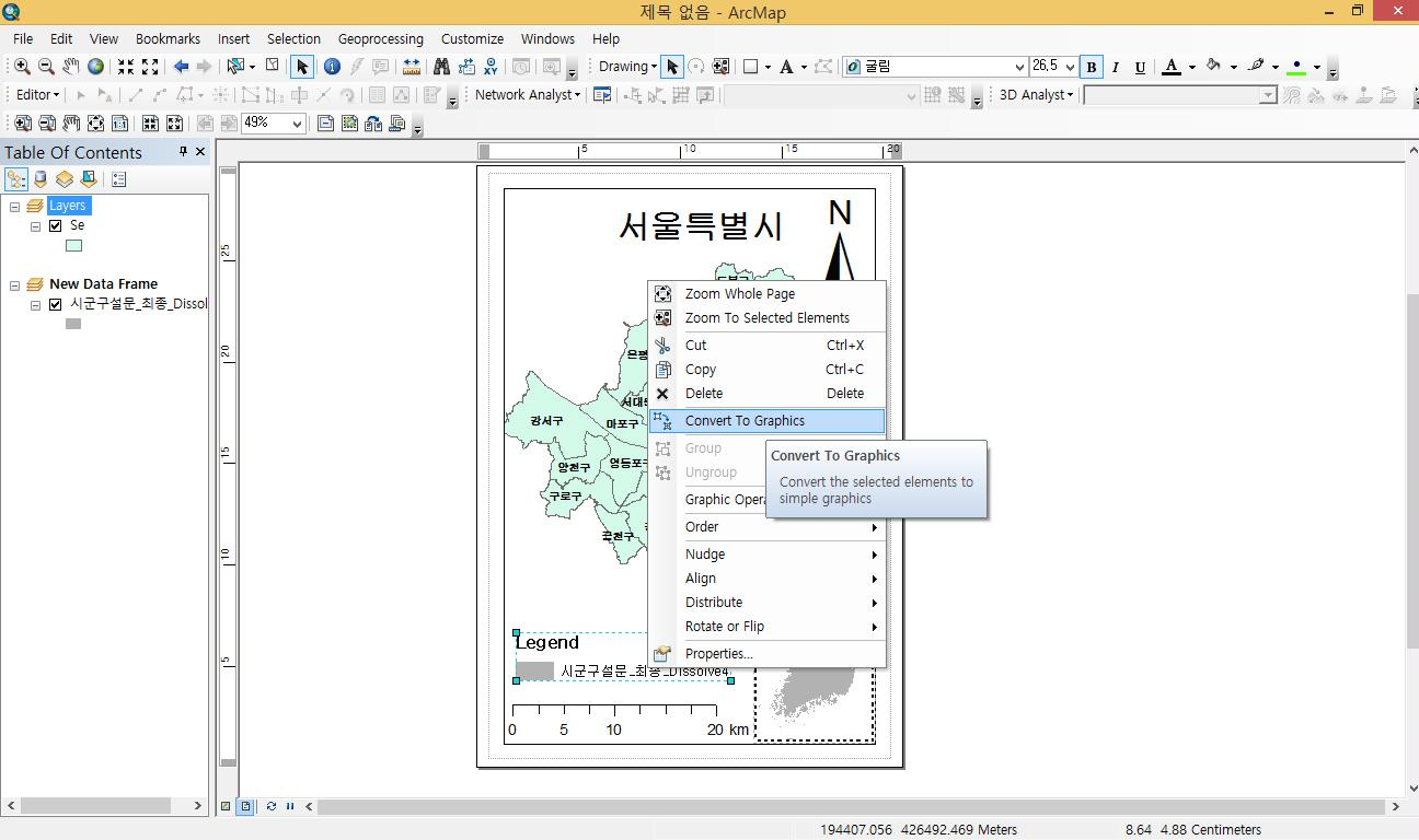 그럴 땐, 우클릭 - Convert feature to graphics를 통해 그래픽으로 바꾼 후, 작업해주시면 됩니다.