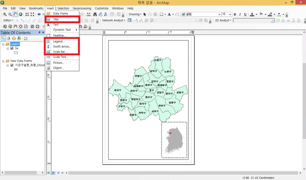 (TOC 영역에서 generl을 통해 레이어의 이름을 직접바꾸고 범례를 추가하는 방법도 있습니다.)