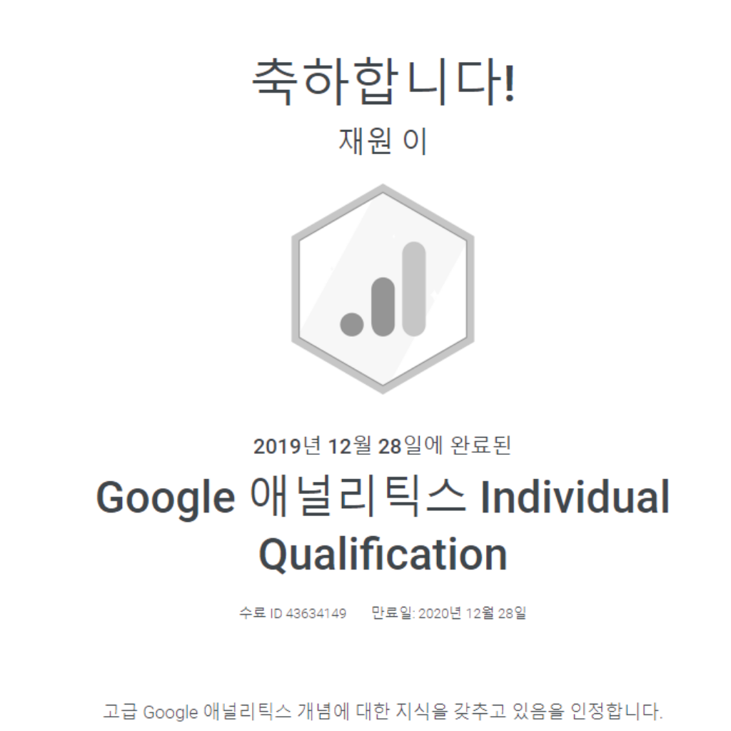 어제 GA IQ 취득에 성공하여 기쁜 마음으로 후기를 작성합니다.