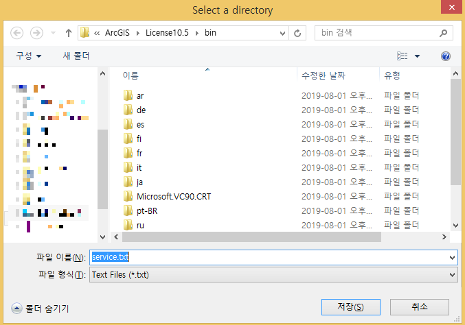 해당 파일을 ArcGIS\License10.5\bin폴더에 저장합니다.